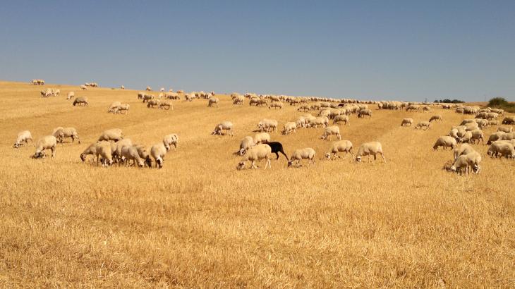 Ganado pastando en los rastrojos,