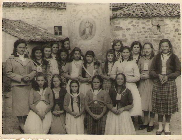 Fotografía del recuerdo de las niñas que cantaban a María y la traían flores en el mes de Mayo. Felicidades a las que están y un recuerdo muy especial a las que no están. Imagen de "las Hijas de María".