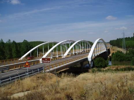 Este puente está construido entre el puente de la retención y las compuertas; la carretera es la A 231 Burgos León.