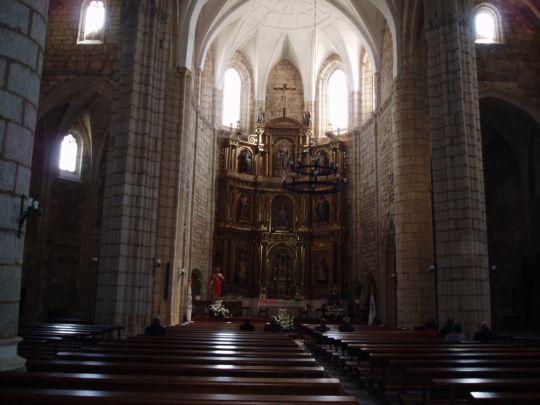 Este es el interior de la espaciosa iglesia de Melgar, considerada el templo de mayores proporciones de la archidiócesis de Burgos después de la catedral. En siglos pasados (año 1797) estuvo servida por hasta 21 eclesiásticos en sus diferentes categorías, llegándosela a considerar una de las primeras iglesias parroquiales de España. Tiene proporciones catedralicias, constituyendo su interior un admirable bosque de columnas y bóvedas.