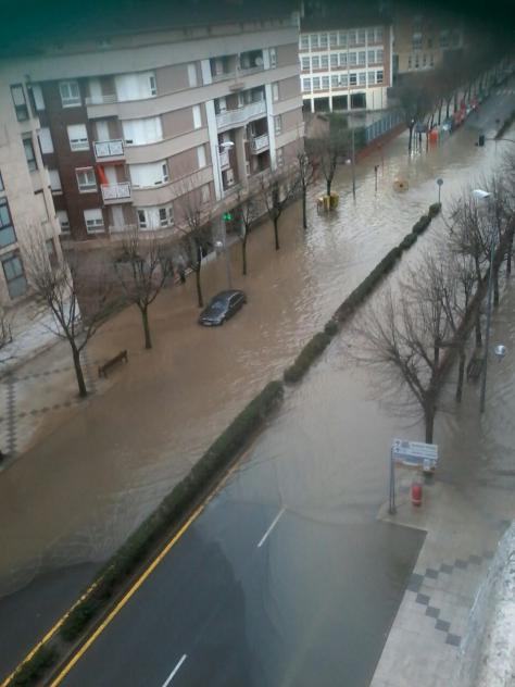 El río invade la calle,