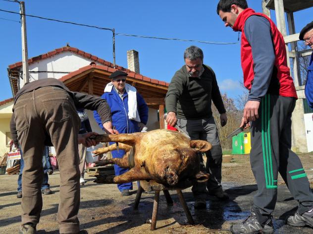 limpiando el cerdo,