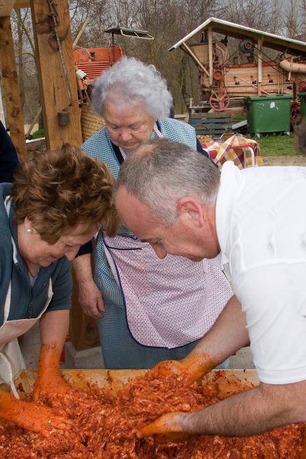 Preparando los chorizos,