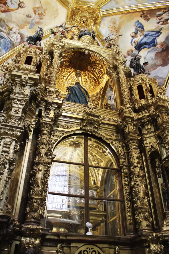 estatuas de condes y reyes fundadores así como heráldica de los cuatro reinos. La