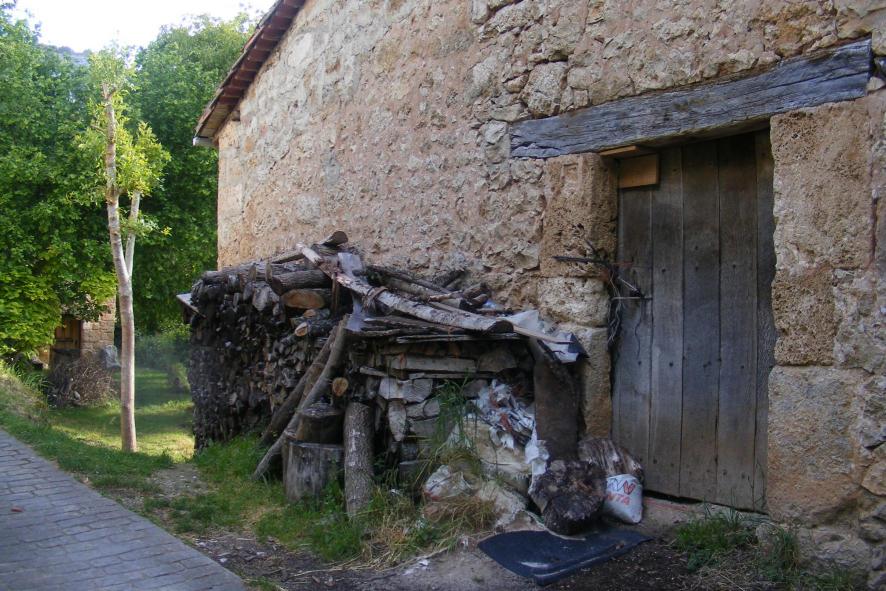 Acumulando madera junto a la puerta,
