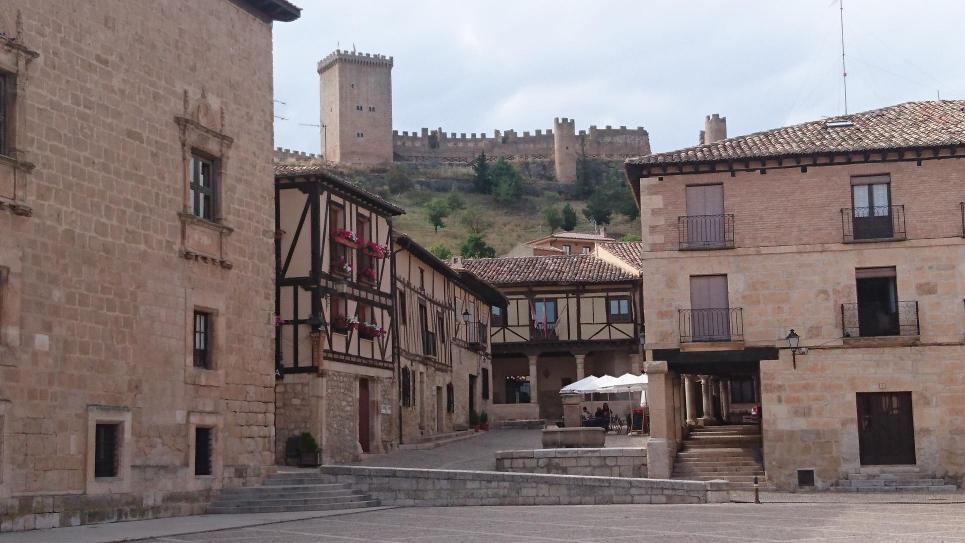 Castillo al fondo visto desde la Plaza Mayor,
