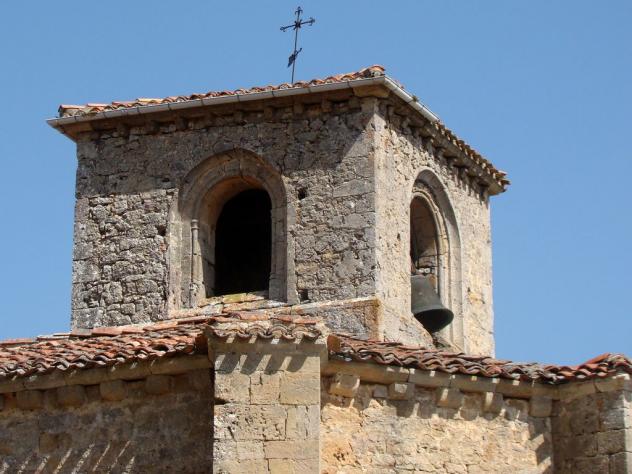 La torre tiene entrada desde el exterior a través de un apuerta adintelada pero cortinada. Tiene diez peldaños de piedra. El campanario se remata con una cornisa sobre canes lisos. La sala de campanas dispones de vanos cardinales. Son vanos de medio punto y de obra del siglo XVI.