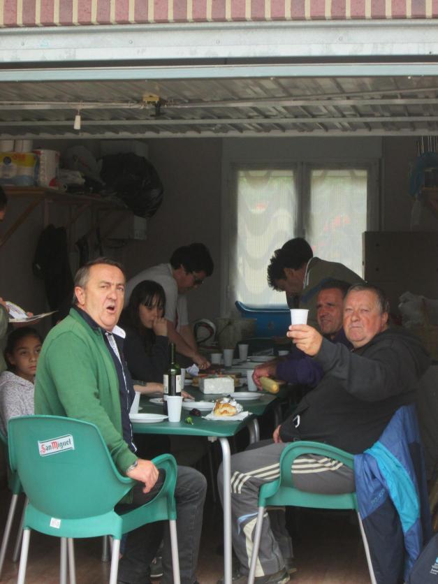cenando, con vecinos,
