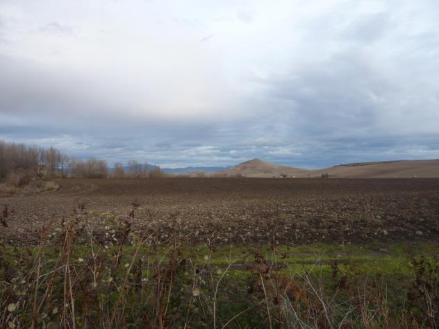 campo arado, montañita y cielo,