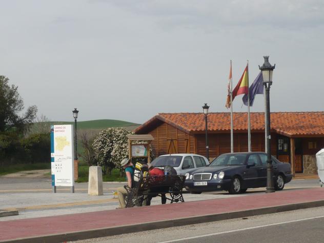 saque del corazón... peregrinos en la entrada de redecilla que cansados estarian estos dos, sentados hasta con las mochilas