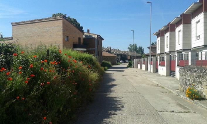 Flores en ambas aceras de una calle,