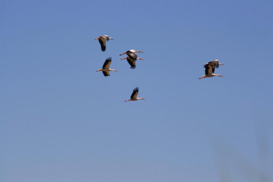 Cigüeñas en pleno vuelo,