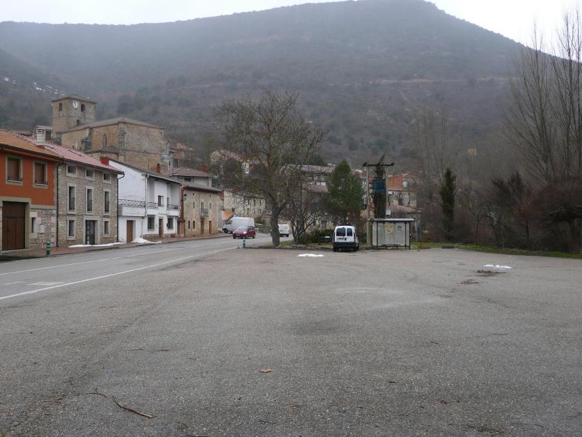Amplio aparcamiento entre el río y la carretera,