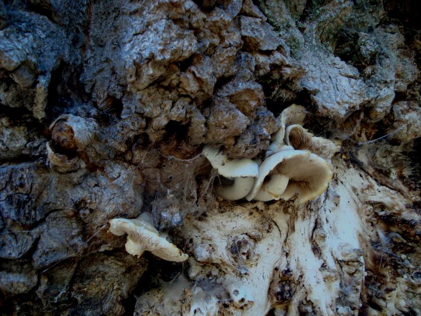 Viejo chopo con setas en el tronco,