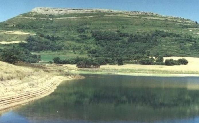 Hermosa foto de la Cuesta Rasa y de la represa de Ropinos, tomada por PMB en agosto del 2003.