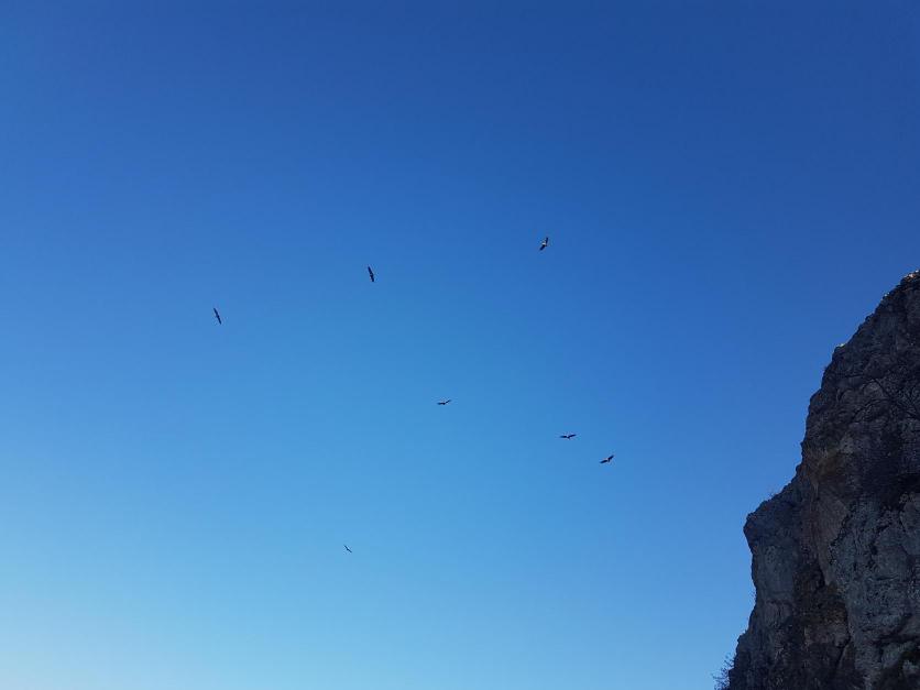 Buitres en el cielo azul,