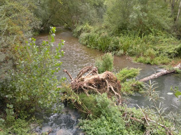 Tronco en el cauce del río,
