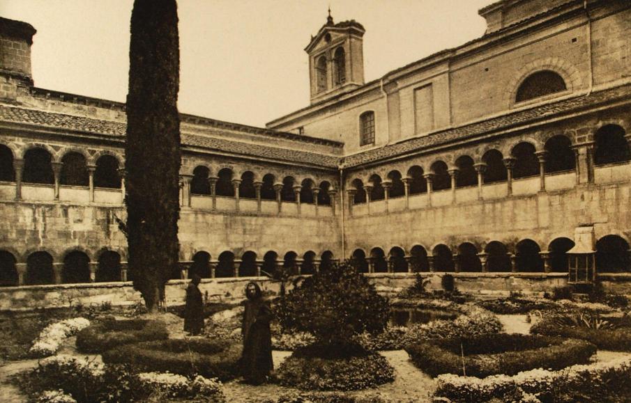 Patio-jardín del monasterio benedictino, año 1945,