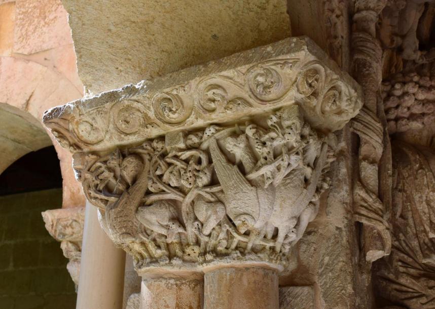 Capitel románico del claustro bajo del monasterio,