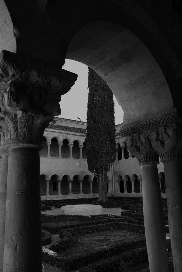Capiteles, ciprés y parte del jardín,