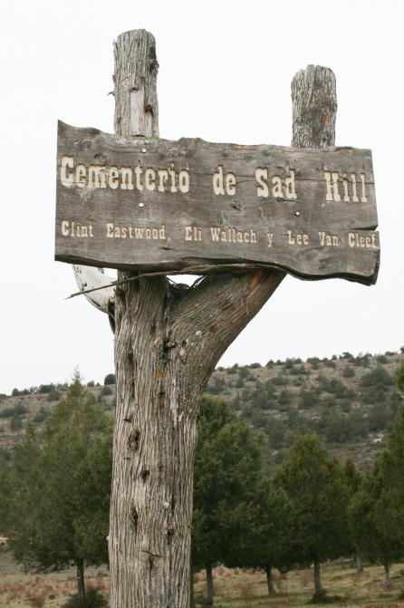 Mojón seco en el lugar donde se rodó el duelo final de la película del Oeste "El Feo, el Bueno y el Malo" en el