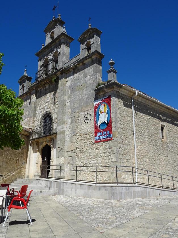 Santuario: Fachada con pancarta de La Misericordia,