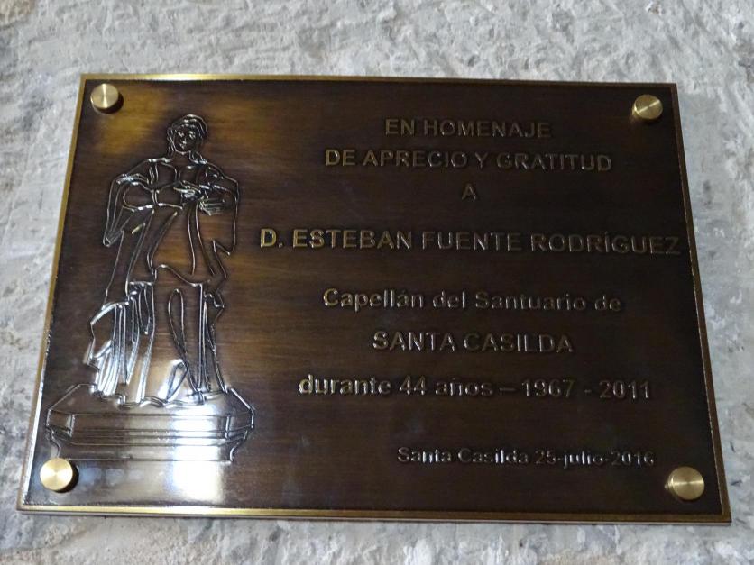 placa homenaje al párroco del santuario, d. esteban fuente rodríguez,