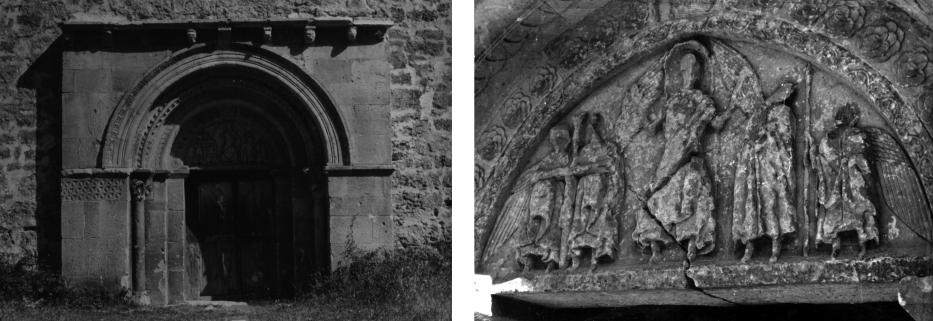 Puerta ermita románica y tímpano. Foto de 1966,