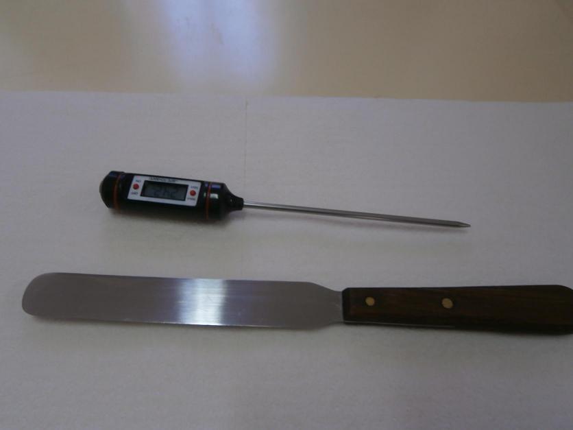 espátula y termómetro para la mezcla,