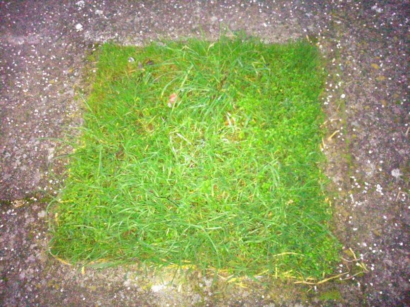 Pequeños jardincillos de hierba natural donde debía de haber árboles,