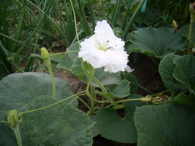 Es una flor muy chula, que parece que se ríe porque es algo rizada pero erguida que le da un aire singular. No da muchas flores - solo unas pocas se llegan a hacer calabazas. Son flores muy delicadas también.