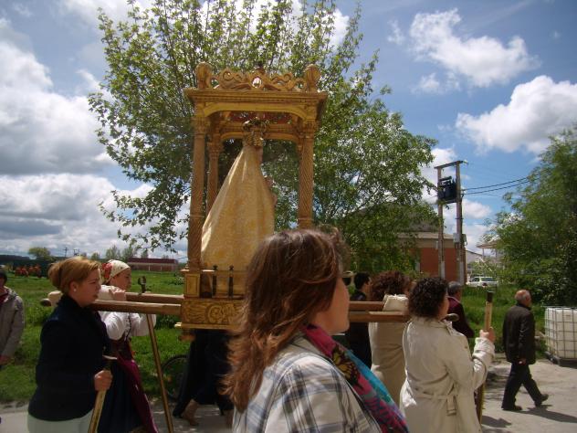 Cada cual se entrega a sus devociones, y la elegida, tanto para el grupo de danzas como para el grupo de los mayores, es la Virgen de las Aguas, que acoge a todos, se sea de Tardajos o no, se sea joven o viejo, enfermo o sano, si se tiene creencia en esta divinidad. Siempre le he procesado mucha fe a esta singular virgen tardajeña. Y muchas veces, ha atendido a mis ruegos, ha sido motivo de inspiración en cantidad de escritos como artículos, textos, poemas, videos y fotos. Hemos recorrido mucho camino... Este año quise tomar la foto de perfil de la Virgen, en su campo de las eras. Terminamos la Calle Mediodía para ir a la calle San Roque, pasar a la Calle Oriente, a la izquierda para ir ya a la calle de las Huertas.