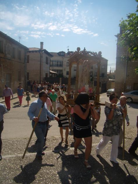 Se dio comienzo a la celebración con la procesión de la Virgen por las Calles del pueblo, y tras un breve recorrido, portada por las mujeres, volvió a la iglesia donde tuvo lugar la celebración de la Santa Misa, amenizada como ya es costumbre por la Coral de Tardajos. También cabe reseñar que una vez más fue cantado El Ave María, y como siempre desde que esto sucede, a muchos nos hizo sentir el canto con lágrimas en los ojos de emoción por tan bella melodía.