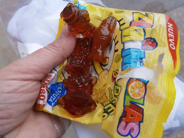 200 gramos de azúcar.... Después de una carrera, el azúcar viene de perlas. Y con formas y colores muy bonitos. ¡Qué ricos los bob esponjas!