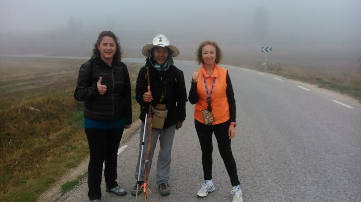 Polly nos dice que él, concretamente, llevaba tres meses de entrenamiento, antes de iniciar el viaje. Que ya lo hizo la vez anterior y que es una forma de prevenir lesiones. El primer mes, camina de 15 a 20 kilómetros diarios, el segundo, de 20 a 25, y el último, lo mismo, pero con mochila.