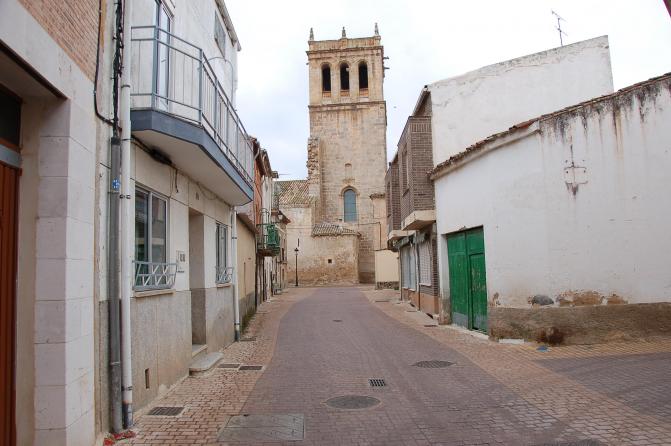 Calle con iglesia al fondo,