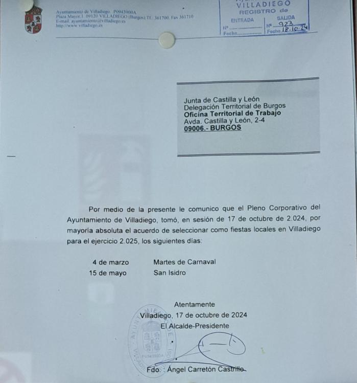 Publicación de dos días festivos,