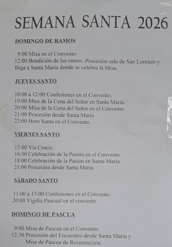 Calendario de Semana Santa, 2026,