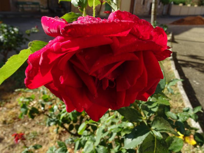 Rosa roja en el jardín de la plaza,