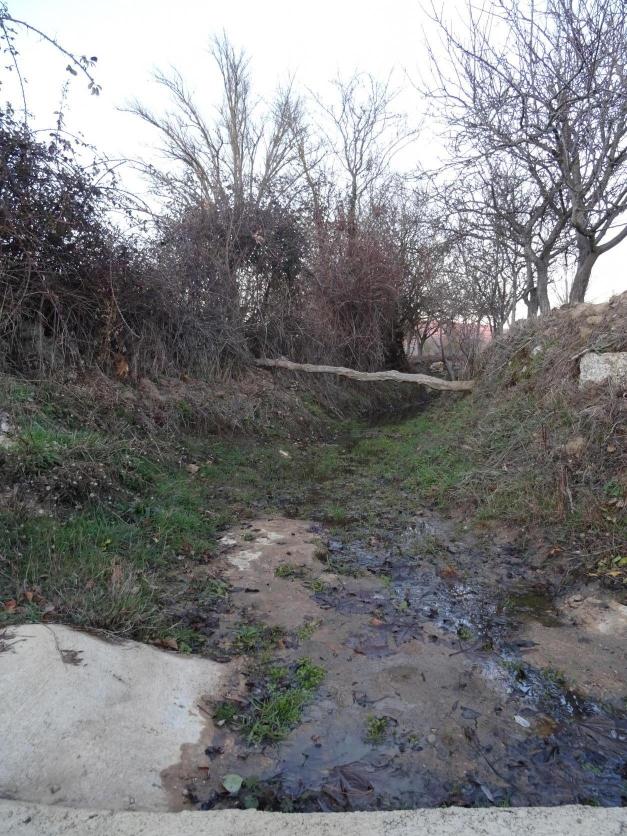 El río de Villanueva, seco, a su llegada al primer puente,