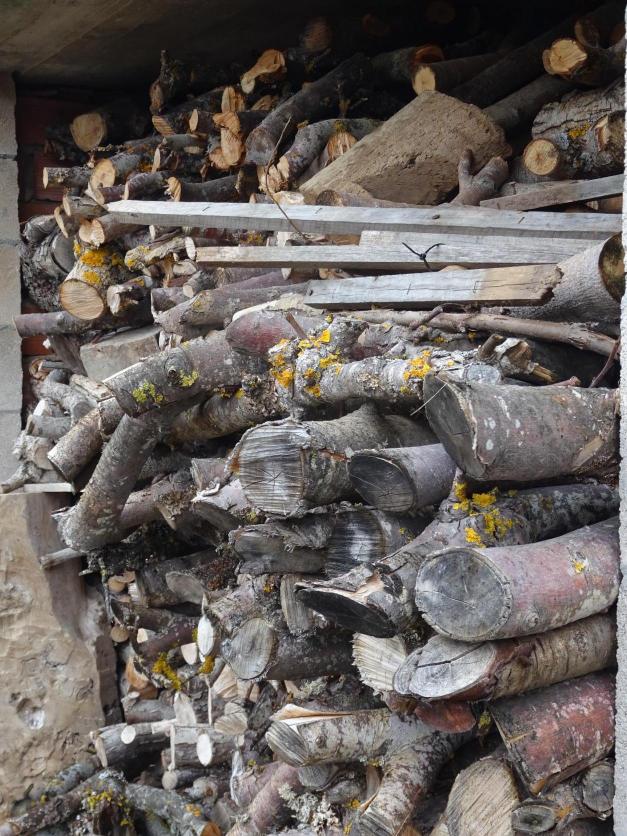 leñera repleta esperando el crudo invierno,