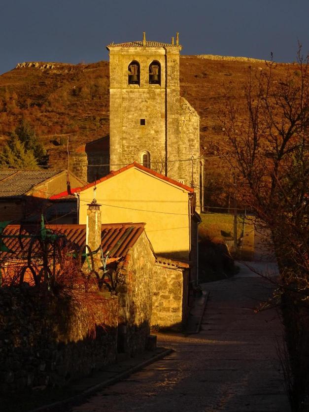 El sol se despide acariciando la torre de la iglesia,