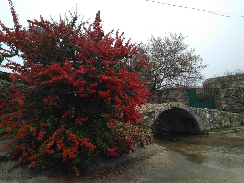Puente románico bellamente protegido por este vegetal florido,