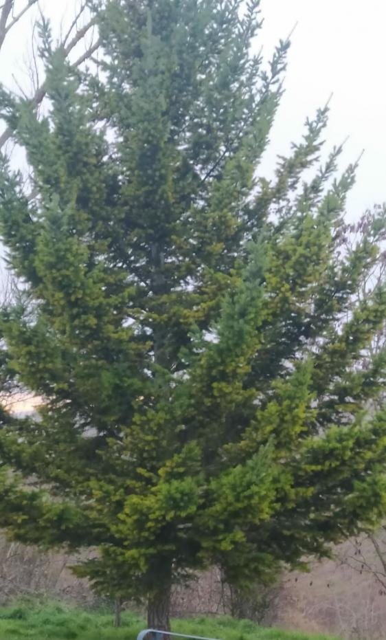 Abeto creciendo junto a la iglesia parroquial,