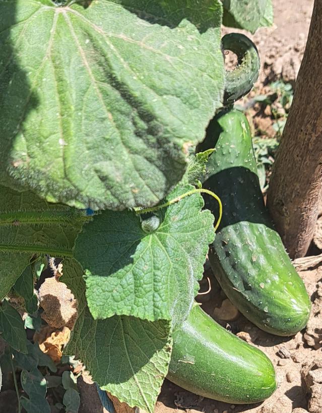Pepinos a punto en su rama.