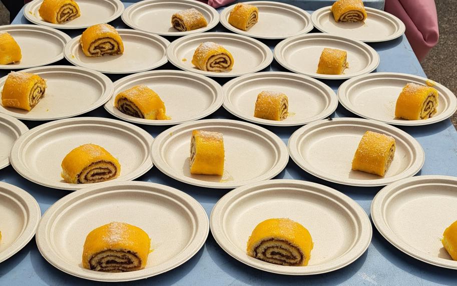 Postre, sin terminar de preparar, para la comida de hermandad,