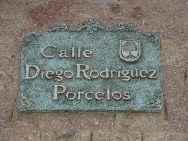Placa dando nombre a la calle Diego Rodríguez Porc,