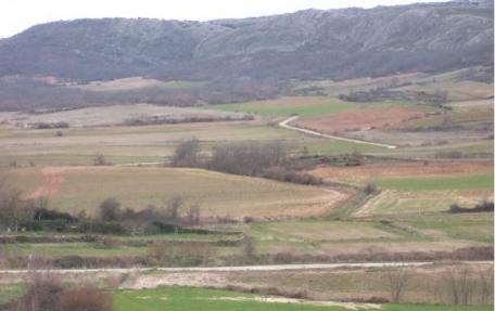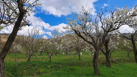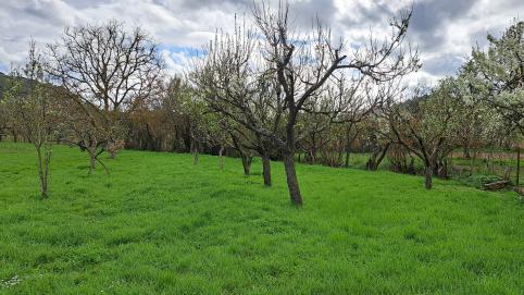 Campos de cultivo y árboles frutales (ciruelos),