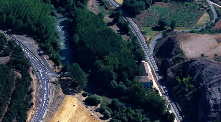 Vista aérea de la carretera y la entrada a Puente Pisuerga,