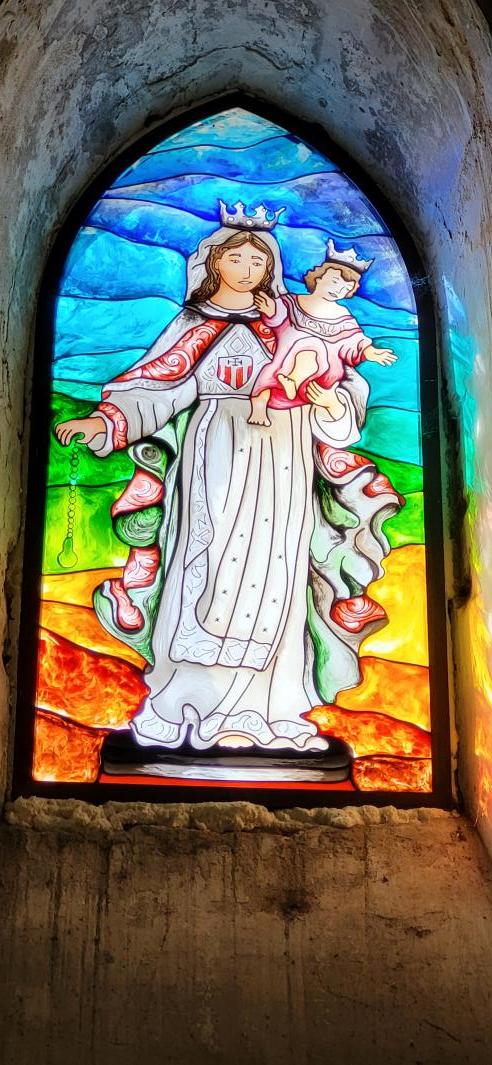 ventanal sustituyendo la cristalera diáfana antigua. Una imagen de María con tal advocación de "la Merced" no ha existido nunca en nuestra